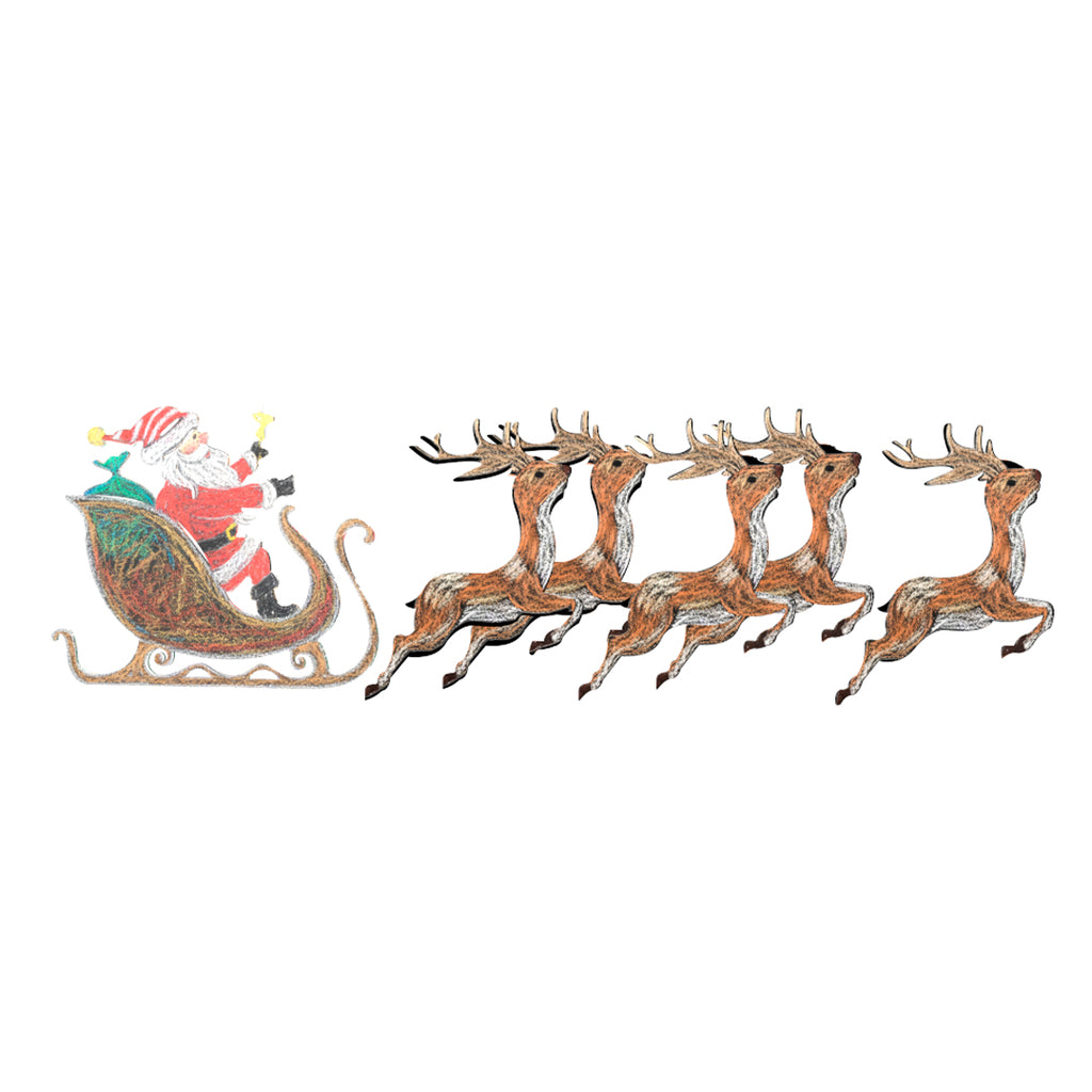 Santa con 5 Renos Decoración Navideña Pizarrón