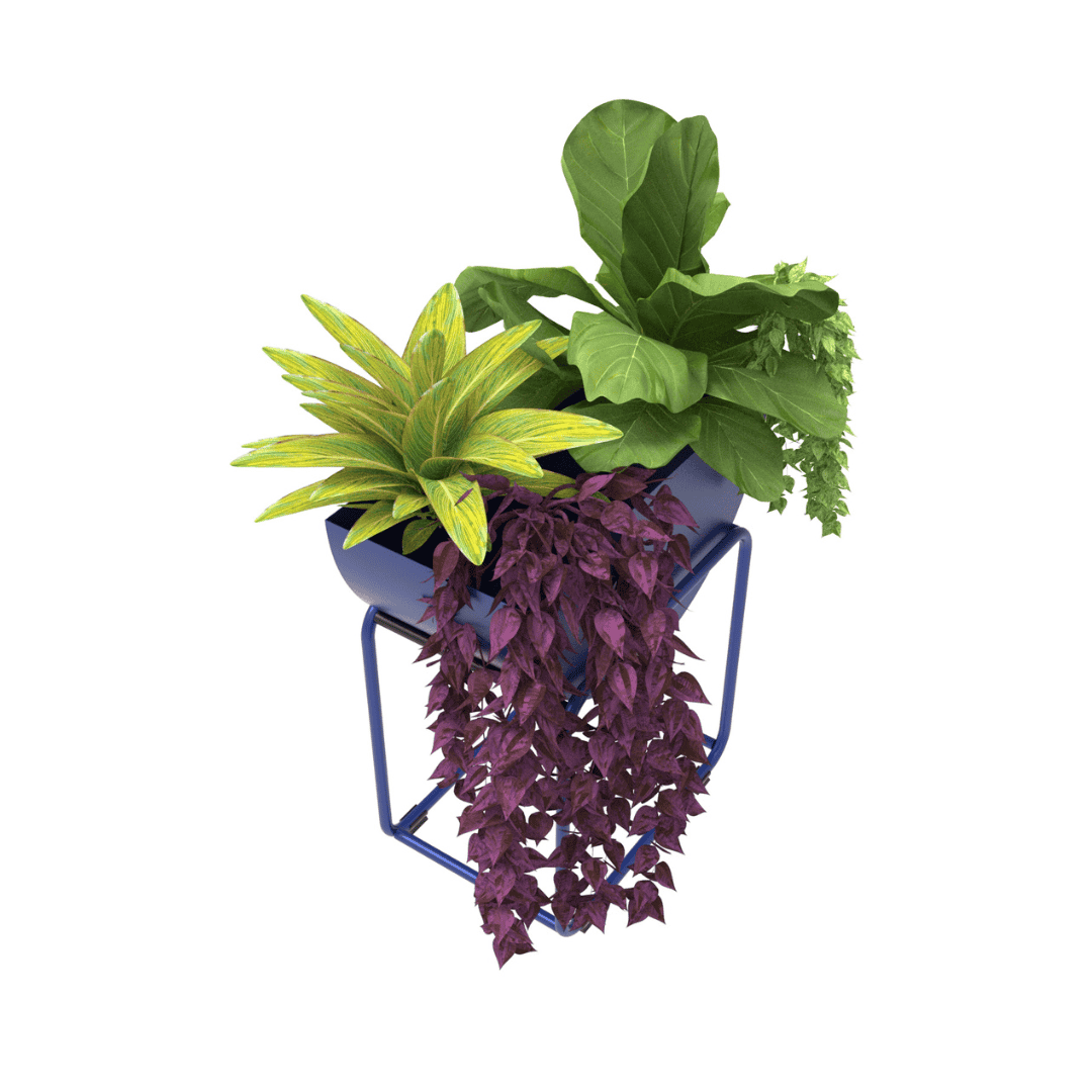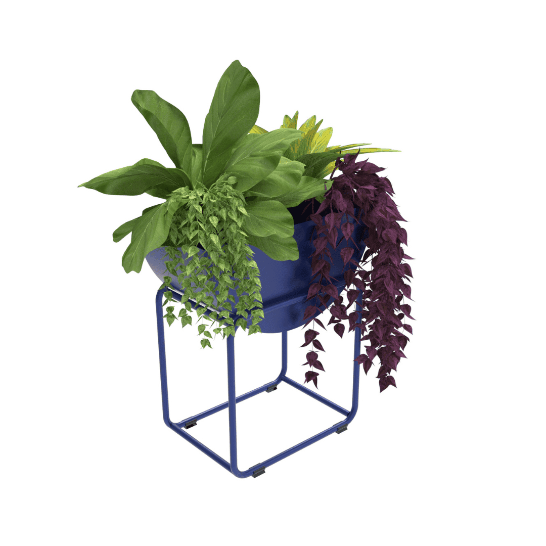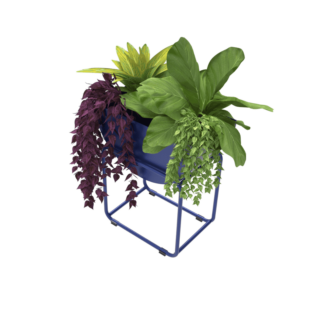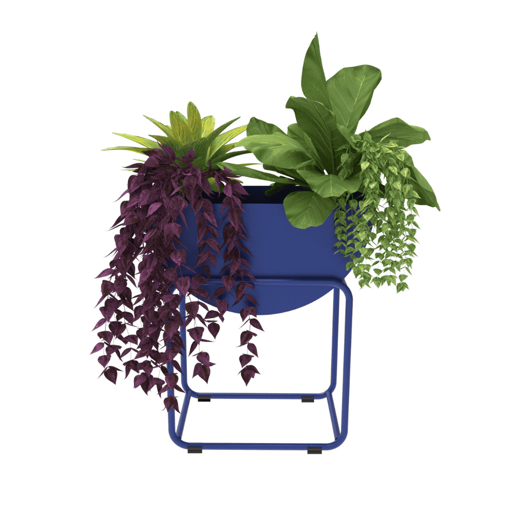 Maceta metálica semicircular fabricada en lamina de acero rolada en frío. Soportes en perfil redondo con 4 refuerzos. Cuenta con perforaciones en su base para el libre drenaje del agua.