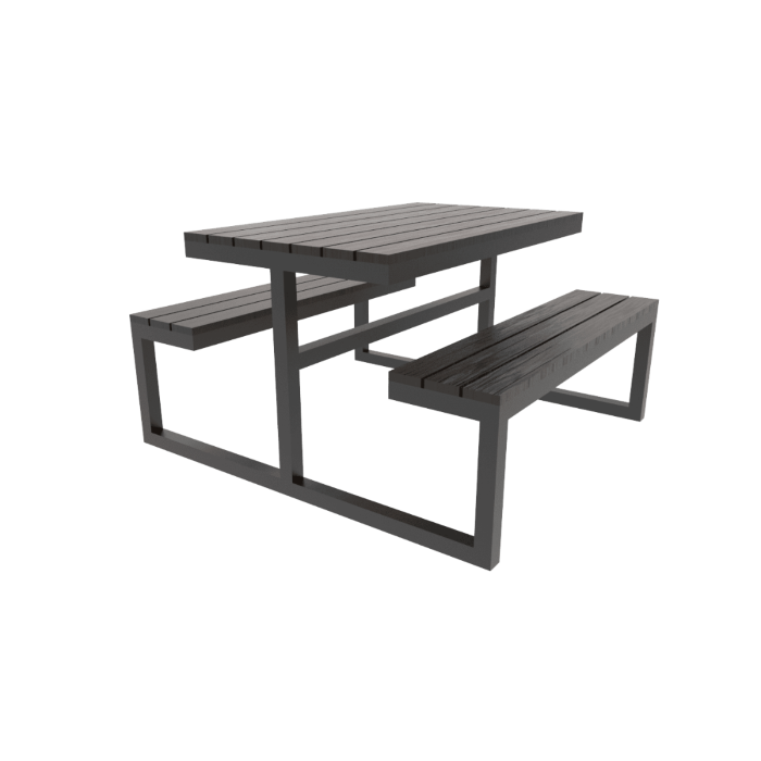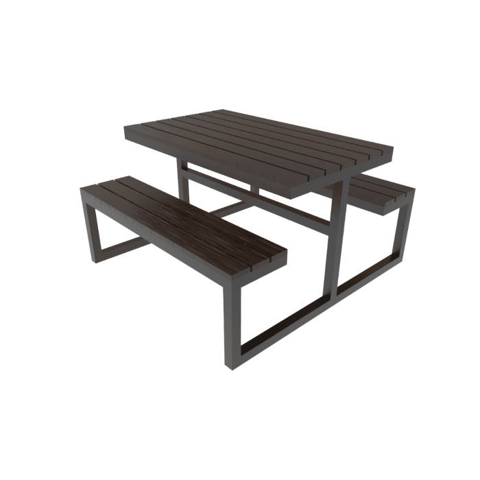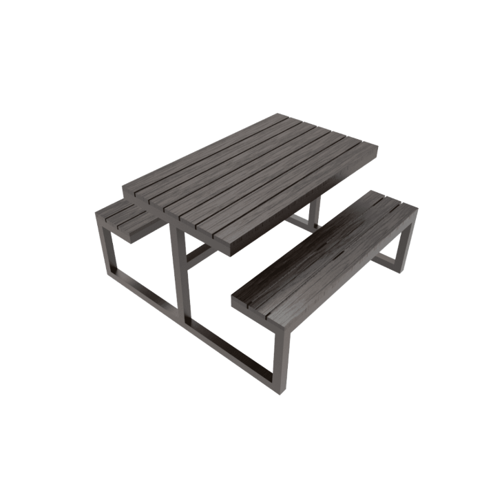 Cuenta con una estructura principal formada por una mesa y dos asientos